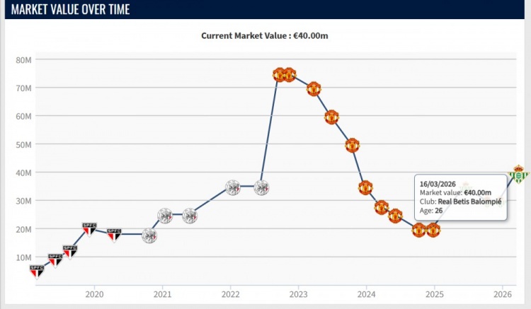 乐竞体育-本赛季34场11球9助攻,安东尼德转身价涨至4000万欧,贝蒂斯最高